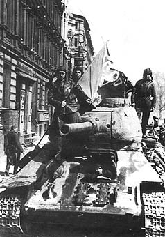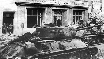 T-34-85 in conquered Berlin. Notice a captured MP-40 on the turret side. (M.Baryatinsky) |