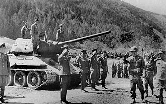 An American officer inspects a tank brigade of T-34-85 in Austria. May 1945. (Federal Archive) |