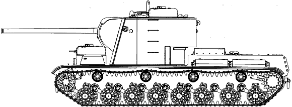 The tank had the easily replaced cast turret from the KV-1. For protection of the tank against antitank guns, its frontal armor had an enormous for the time thickness of 135 mm. The armor thickness on the turret roof was 40 mm. The tank was equipped with a TMFD telescopic sight. The U-11 cannon had semi-fixed ammunition from the M-30 Howitzer, its vertical elevation angle was -4° +19,5°. The tank's basic load consisted of 48 rounds for the main gun and 2,646 cartridges for the three 7.62mm DT machine-guns.