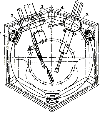 | 1. Turret brake; 2. Horizontal gun armor shield; 3. Vertical gun armor shield; 4. Machine gun ball mount lock handle; 5. Ball shield. |