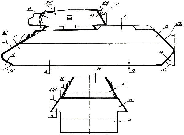 As a result, the newly created design bureau was much more powerful than the main KB. For the development of the new tank ABTU sent to Kharkov captain E. A. Kulchitski, military engineer of 3rd rank A.Y. Dick, engineers P.P. Vasiliev, V.G. Matyukhin, Vodopianov, and 41 VAMM graduates. In its turn the factory selected constructors A.A. Morozov, N.S. Korotchenko, Shur, A.A. Moloshtanov, M.M. Lurie, Verkhovskii, Dikon, P.N. Goryun, M.I. Tarshinov, A.S. Bondarenko, Y.I. Baran, V.Y. Kurasov, V.M. Doroshenko, Gorbenko, Efimov, Efremenko, Raidochin, P.S. Sentyurin, Dolgonogov, Pomochaibenko, V.S. Kalendin, and Valovoi. The supervisor of the OKB was appointed to be A.Y. Dick, the assistant supervisor - engineer P.N. Goryun, consultant of ABTU - E.A. Kulchitskii, section supervisors - V.M. Doroshenko (control), M.I. Tarshinov (hull), Gorbenko (power plant), A.A. Morozov (transmission), and P. P. Vasiliev (drive train).
