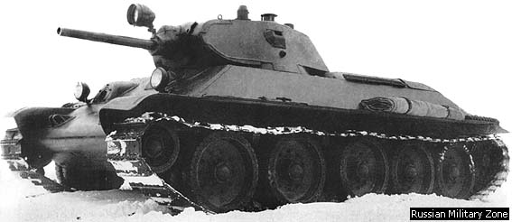 After the 250 km run, the first A-34 suffered from a malfunctioning engine, with only 25 hours of operation, which had to be replaced. By February 26th this machine had traveled only 650 km, and the second one - only 350. It became obvious that it will be impossible to conclude all of the testing - 2000 km worth - before the government showing, scheduled for March, and without the completion of the testing, the tanks could not take part in the demonstration. That's when it was decided to drive both A-34s from Kharkov to Moscow, thus accruing the needed mileage in the process. At the special meeting of the party committee of the factory, M.I.Koshkin was appointed as the person responsible for the task. On the morning of March 5th (according to other sources, on the night of March 5th-6th), a procession of two A-34s and two tractors "Voroshilovets," one of which was outfitted as living quarters and the other - fully stocked with spare parts, started out down the road to Moscow. To keep the journey secret, the rout circumvented all major towns and roads. The use of bridges was permitted only if it was impossible to cross a river by ice at night. The schedule of the journey took into account not just the time needed for travel and rest, but also the schedule of trains at railway intersections and the predicted weather conditions along the route. The average speed had to be no greater than 30 km/hour. Unfortunately, trouble started fairly soon, not far from Belgorod. While traversing a snow field, one of the tanks lost its main friction clutch. In a number of publications this is attributed to the inexperience of one of the drivers. |